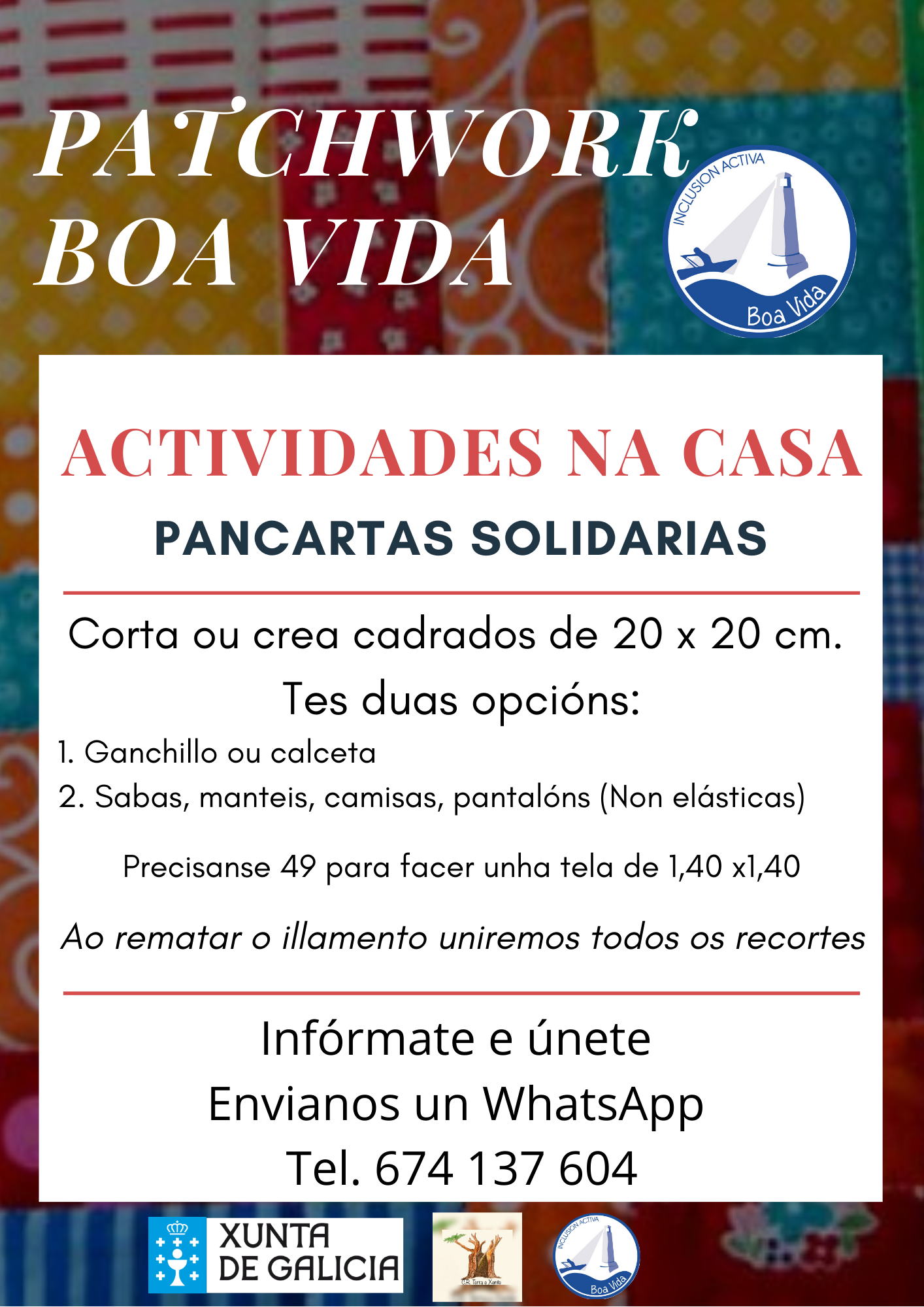 PatchWork Abril 1, 2020 Boa Vida Vida trapera Actividades na casa, se queres colaborar con esta nova actividade atende as instruccións da imaxe nesta publicación. Imos facer una enorme pancarta solidaria que nos represente e precisamos da túa axuda. Únete a nos e colabora. Anterior Seguinte