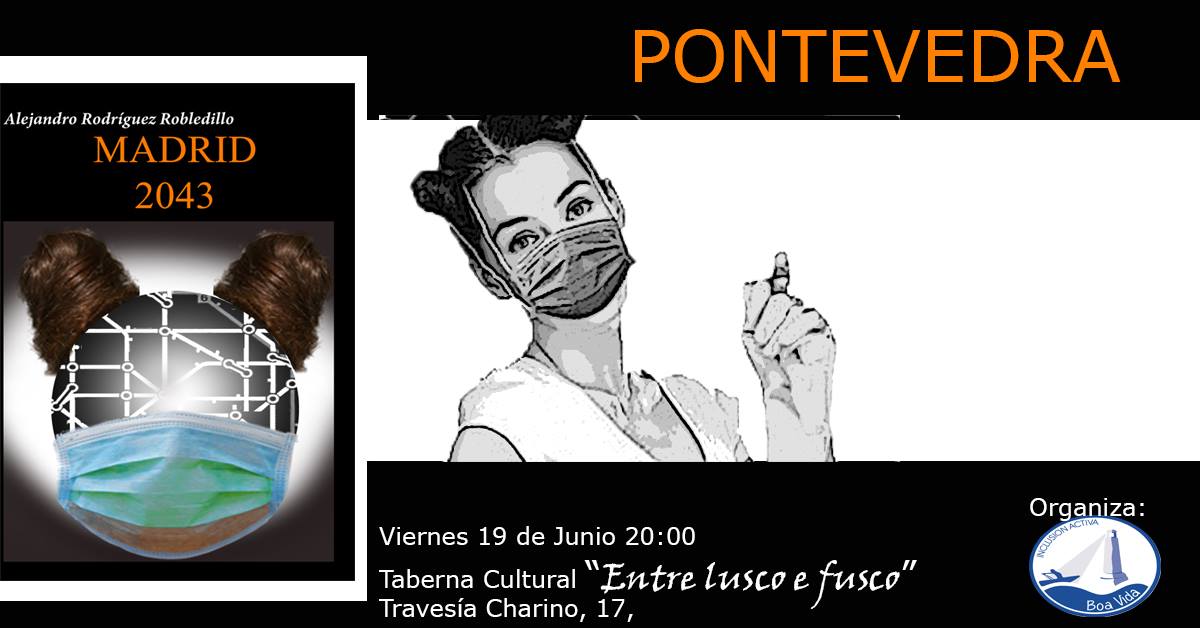 O venres 19 de xuño as 20 h. levaremos a cabo a presentación do libro “Madrid 2043” do escritor e traballador social Alejandro Robledillo na Taberna Cultural Entre Lusco E Fusco. O aforo é limitado, pero faremos varias sesións da presentación para que ninguén se quede sen o seu exemplar asinado. Agardámoste.